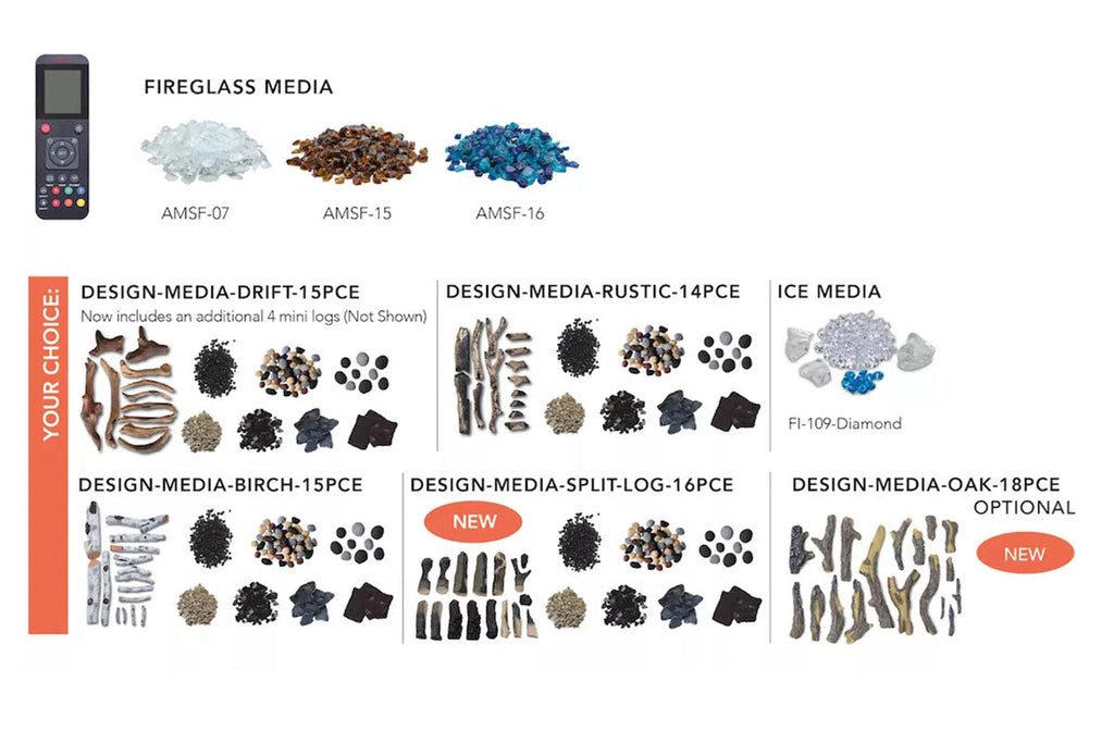 **Select Media Bed Options**: 15 pce Deluxe Birch Logs w/ Stones & Pebbles