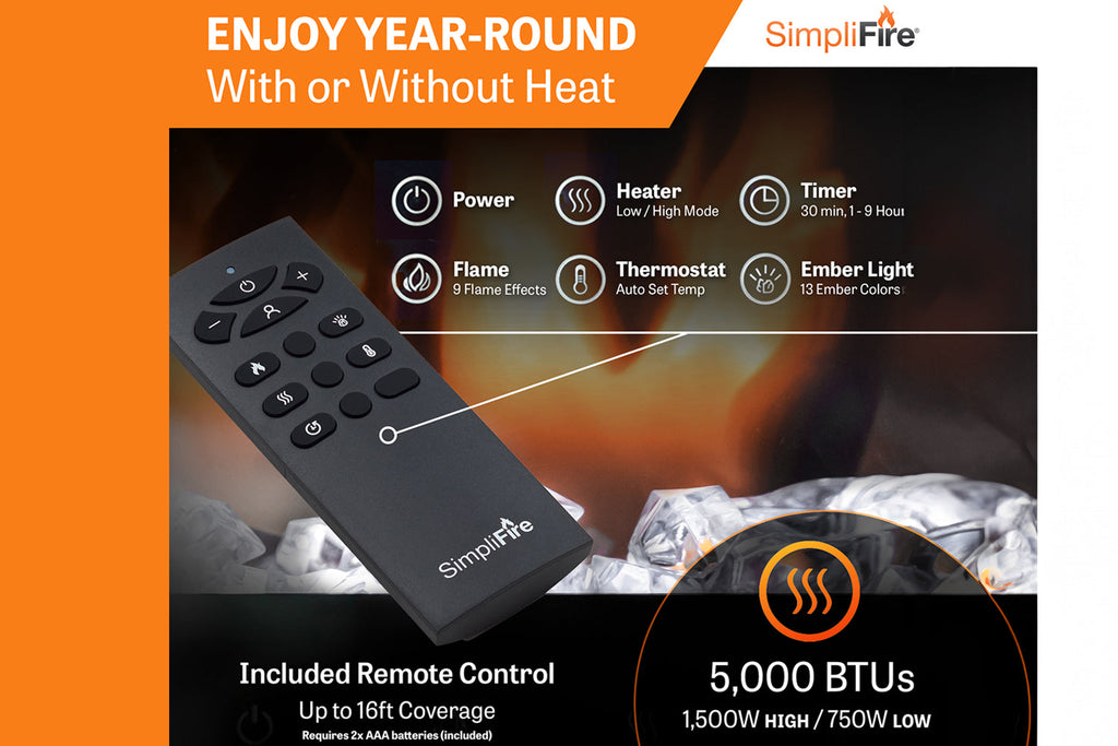 SimpliFire Allusion Slim 50'' Wall Mount / Recessed Electric Fireplace